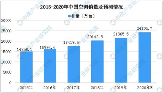 從銷量來看:從2016年至今我國空調(diào)銷售保持了持續(xù)上升的發(fā)展趨勢,2019年國內(nèi)空調(diào)總銷量21365.5萬臺,相比2018年的20142.5萬臺增長了6.07%,預(yù)計2020年我國空調(diào)總銷量將達(dá)24105.7萬臺。